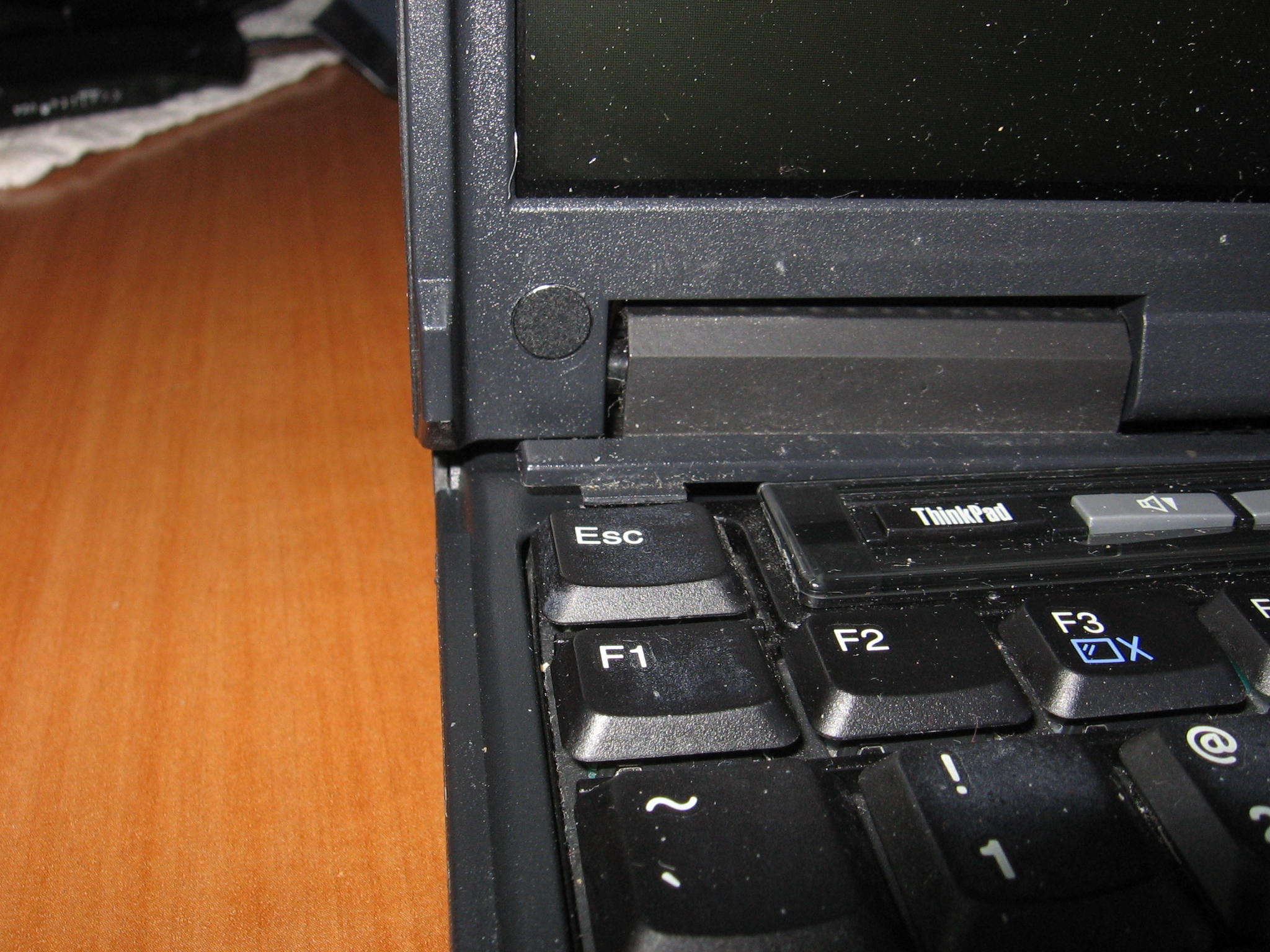 Left rear corner showing misaligned hinge cover that has been pushed upward (original image 1.5MB):