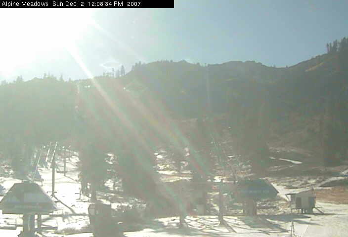 Hard to see because of the sun, but there appears to be a little bit of natural snow here at Alpine. I think the elevation here is around 8000'. |
